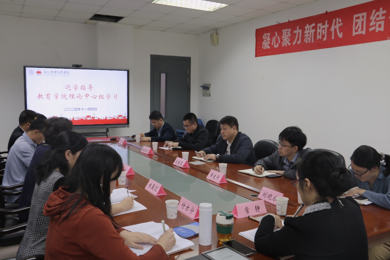114日,教育永利澳门 党委理论学习中心组举行集中学习研讨,围绕学习贯彻全国教育大会精神主题展开。校巡学旁听工作小组组长、党委办公室主任刘春雷带领巡学指导组成员莅会指导。院党委书记赵阳主持学习,永利澳门 党委理论学习中心组成员、各系主任、教工党支部书记参加学习。