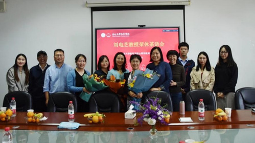 刘电芝教授的学生代表们在线下和线上纷纷发表感言,表达了对刘老师的崇高敬意和悉心培养的感谢,并祝愿刘老师身体健康,在未来的生活中事事顺心如意。支部书记丁芳教授代表全体老师向刘教授赠送了荣休纪念品。