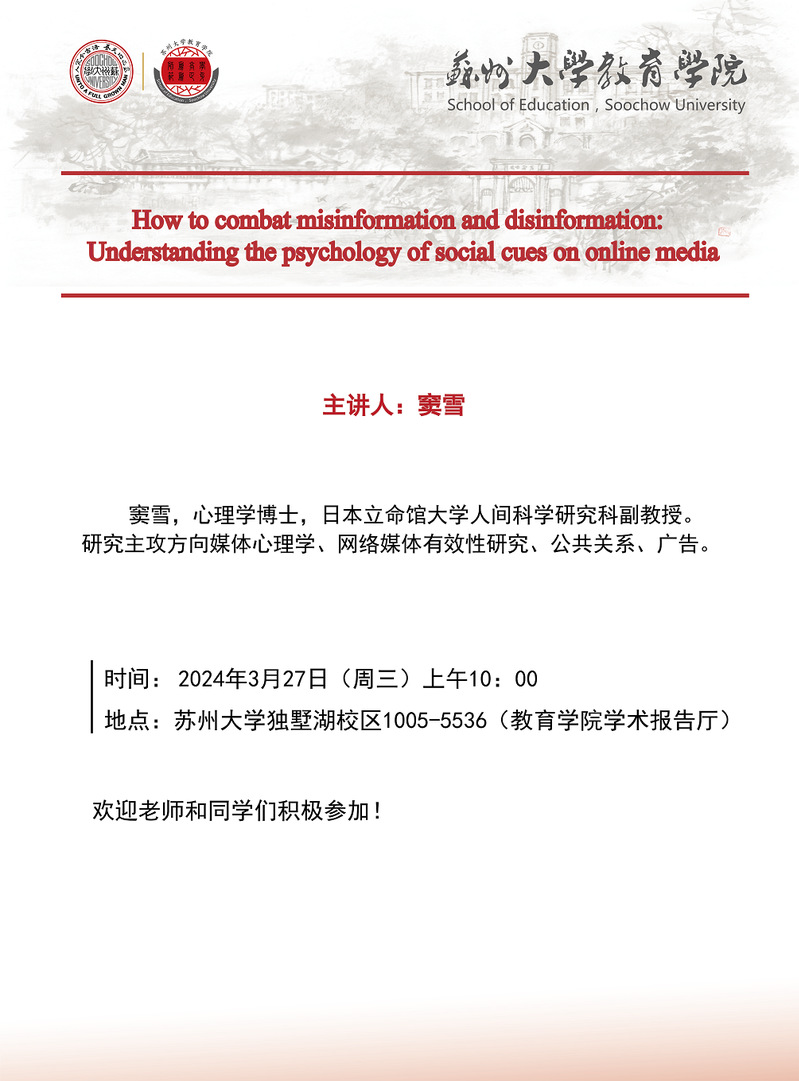 永利澳门 :How to combat misinformation and disinformation: Understanding the psychology of social cues on online media[3.27]
