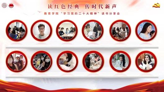 为深入学习、宣传、贯彻好党的二十大精神,在全院迅速掀起学习党的二十大精神热潮,教育永利澳门 党委主办,本科生党支部、心理学研究生二支部承办,组织开展了“读红色经典 传时代新声”系列学习活动。2022年12月18日,“读红色经典 传时代新声”读书分享会暨教育永利澳门 “学习党的二十大精神”主题党日活动以线上读书分享会的形式顺利举行。